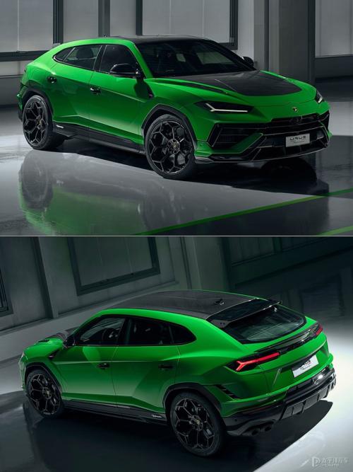 兰博基尼Urus Performante在外观上就与一般版本Urus有着不小差别,包含了更显气势的前保险杠,并且融会更多性能科技元素,例如多层次的分流进气造型,下缘的扰流板采用了碳纤维材质,其实仔细看会发现,Urus Performante外观运用了诸多碳纤维来打造,侧裙、后保险杆、扰流尾翼、底盘扩散分流器等处同样也是碳纤维所打造,就连后保险杆下方的排气系统,也是由Akrapovi?所打造的钛金属排气管。