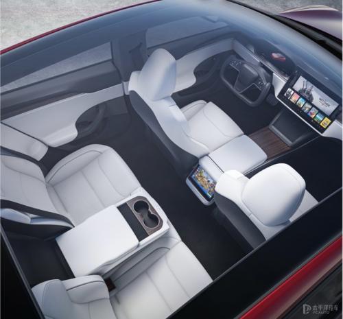 更大的变化在内饰部分,车内采用了3屏布局,分别为12.3寸的主仪表、17寸横置的中控屏和8寸的后置屏幕,最引人瞩目的17英寸中控触摸屏改成了横向布置,同时离驾驶者距离更近,使用更加方便。当然更具特色的是无上半沿的全新Yoke方向盘。
