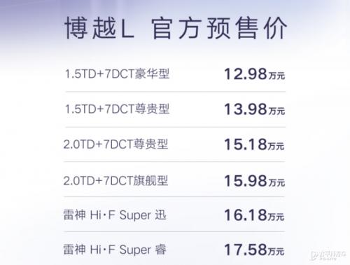【太平洋汽车新车频道】日前,我们从官方渠道获悉,吉利博越L将于10月26日正式上市。新车此前已启动预售,共推出雷神混动Hi·F、Drive-E系列2.0TD+7DCT、吉利劲擎1.5TD+7DCT等3款动力总成共计6款车型,预售价为12.98—17.58万元。