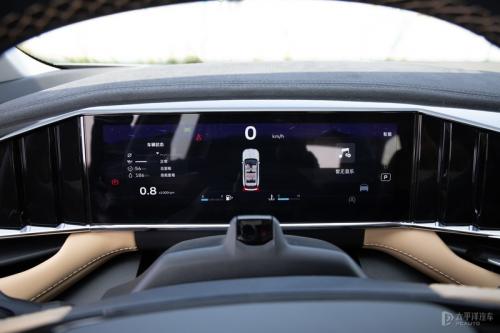 用料方面,手能触摸到的地方基本都是软的皮质,触感不错,中控台上方也大面积采用了环保麂皮包覆,车厢的档次感营造不错。车上的氛围灯也挺有意思,采用的是长短不一的竖条形式,贯穿中控台与两侧车门板,可以联动空调、音乐、语音等,也可通过模拟声纹、呼吸、流水变化等表达“情感”,交互上更有仪式感。