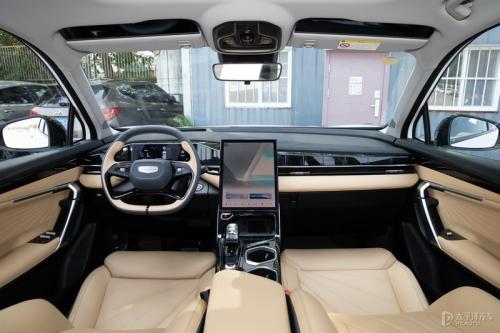 博越L搭载的是吉利最新的银河OS Air版系统,采用13.2英寸中控竖屏,分辨率达到1440X1920,图像的显示很细腻。最重要的是配备了高通8155芯片,这在车机里算比较高规格的了。比较遗憾的是,这次体验车型为工程车,车机功能并未开放体验,之后的试驾体验我们再进行详细体验了。