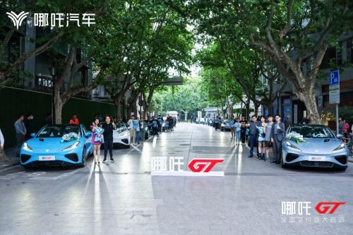 周江和哪吒GT准车主、现场嘉宾们共同见证了这一重要时刻,并表示:“哪吒GT作为一款跑车,本身就是潮流时尚的象征,是年轻态度和个性主张的表达。哪吒GT的用户也是一群有时尚品味、有态度、热爱生活的人,这不仅是一场交付仪式,也是他们结识新伙伴、开启新出行生活的‘起跳点’。”