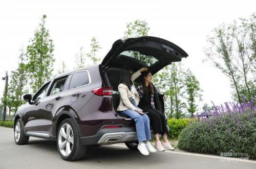 再来到侧面,直观感完全就是一辆MPV。为了照顾到后排乘客的视野,福特领裕采用了三块大面积的玻璃,顶部配备了延伸至第三排的大天窗,这些设计既奠定了整车的硬朗风格,也使得整个乘坐空间更加“通透”,减小压抑感,突出了对家人的体贴。新车提供19/20寸的轮毂可选,大尺寸的轮毂让这款车看起来气场更足。
