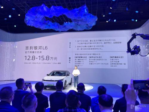 在2023成都车展上,吉利银河L6开启预售,新车推出4款车型,预售价格区间为12.8-15.8万元。同时,官方还为银河L6提供了早订礼以及精品礼。