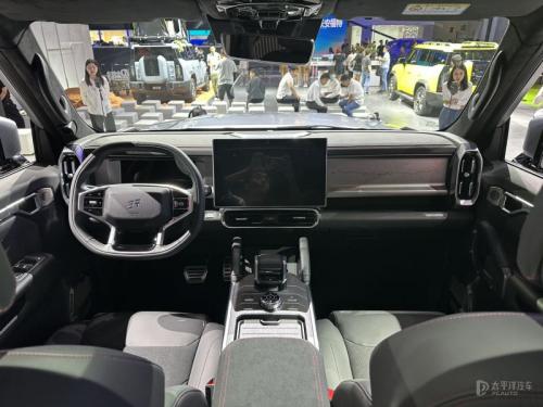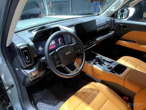 内饰方面,整体风格也偏向硬派,采用诸多的圆角矩形的设计元素,配备大尺寸悬浮式中控屏、全液晶仪表和三辐式多功能方向盘。