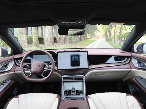 内饰设计也很有特色,吸取海洋灵感,采用双配色设计,配备有10.25英寸的全液晶仪表、15.6英寸自适应旋转悬浮式中控屏,内置有全新一一DiLink智能网联系统。