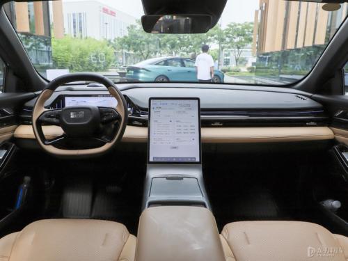 内饰同样很简约,无论是设计还是配色上都比较讨好年轻用户,配有13.2英寸的中控竖屏,标配银河NOS系统,搭载8155芯片、10.25英寸全液晶仪表。