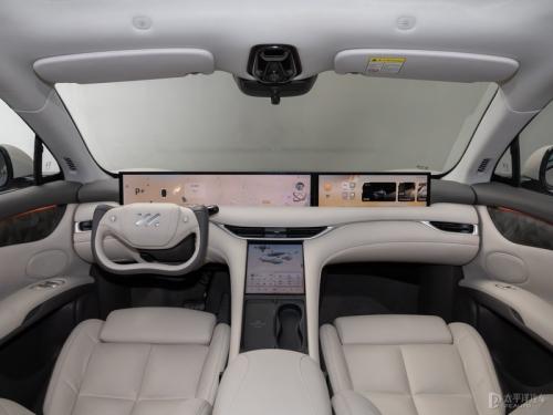 内饰方面,同样延续了智己LS7的布局设计,配备大尺寸升降式双联大屏,尺寸分别为26.3英寸和12.3英寸,同时中央通道区域内嵌有12.8英寸大屏,以及还有半辐式方向盘,视觉效果极具科技感。