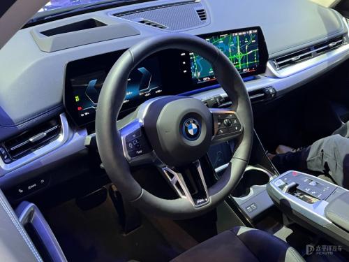 内饰设计也与宝马X1如出一辙,布局非常简洁,配备由10.25英寸的全液晶仪表盘与10.7英寸中控屏组成的双联屏设计,搭载宝马最新的iDrive 8系统,并采用拨杆式电子换挡机构。