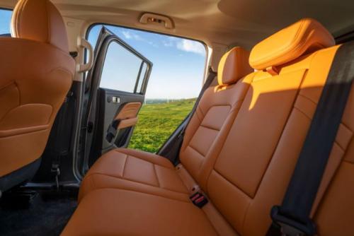 在舒适空间方面,整车尺寸4800mm(外挂备胎)/4680mm(外挂小书包)*1916mm*1822mm,2738mm的轴距,同时方正的造型也带来了不错的视野与乘坐舒适性,座椅方面,前排座椅深度486mm,宽度496mm,采用PVC背覆海绵,搭配仿皮材质,触感、型面完美贴合人体脊柱,乘坐起来还是蛮舒适的,包裹性也不错,有着一定的运动感。座椅通风、加热及腰托(顶配标配通风,主驾标配腰托)也没有缺席,支持三档加热调节,可以独立设置座椅加热温度。