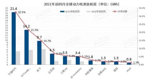其中,宁德时代的装机量几乎翻了两番,达21.4 GWh,在全球市场占据32.5%的份额,这巩固了该公司作为全球最大电动汽车电池制造商的地位。