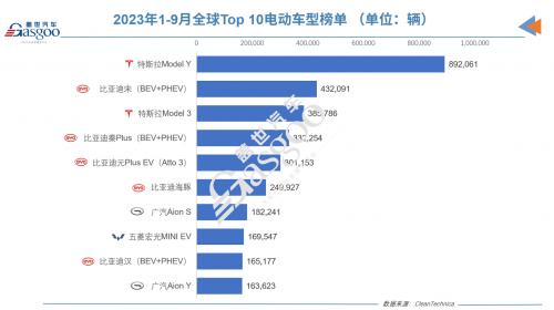 前三季度全球Top 10电动车品牌榜:埃安跻身前三