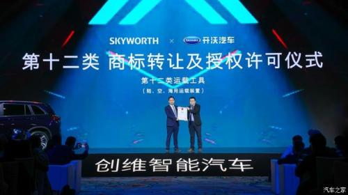 2021年3月26日,开沃新能源汽车集团与创维集团签订商标转让协议,开沃汽车正式获得创维集团在中国适用的尼斯分类的第12类(运载工具;陆、空、海用运载装置)上带有“创维”和/或“Skyworth”商标的11个商标的转让授权。
