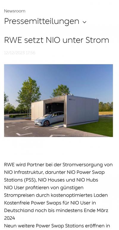 据了解,2024年3月底之前,蔚来在德国的用户仍然可以享受免费换电。从2024年4月起,选择BaaS模式的蔚来车主每月可以获得两次免费换电权益,超出的换电次数每次需支付10欧元的服务费和相应的电费,新的价格模式也将和国内同步。不过,通过与莱茵集团的合作,蔚来车主将可以享受到一个特别有吸引力的电价,大约每度电0.39欧元。