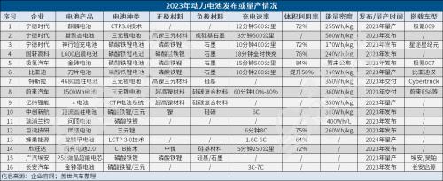 2023年动力电池发布或量产情况(来源:盖世汽车)