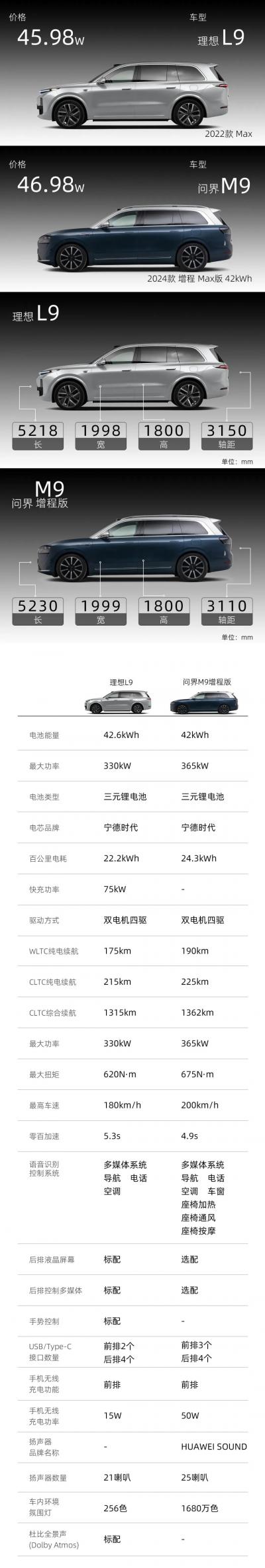由于MEGA在M9的攻势下销声匿迹,流出的信息也仅限于车展预售和工信部的信息,所以我们先和同为SUV的L9来一波基础对比: