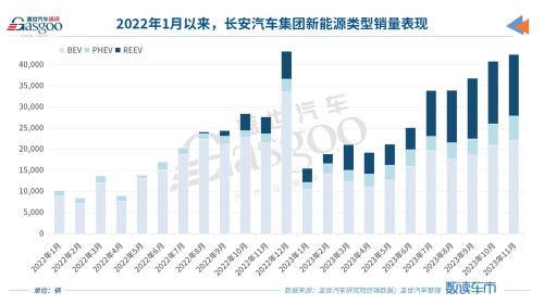 要知道,截至2023年11月末,长安旗下增程式乘用车累计销量9.4万辆,较去年同期暴增862.6%,占长安新能源占比由2022年的6.79%,增长了23.65个百分点,至30.44%。新的一年中,伴随深蓝、阿维塔、启源等新能源品牌齐发力,这一数值或被进一步放大。