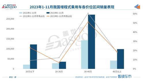 除理想汽车L7/L8/L9、问界M5/M7、哪吒S等车型外,深蓝SL03和S7以及零跑C11等新车型的加入,进一步降低了增程式车型的价格,使其不再只是30万元以上市场的独有,而是深入20万元甚至是15万元以内主流市场,与燃油车、插电式混合动力车型在同一市场竞争。