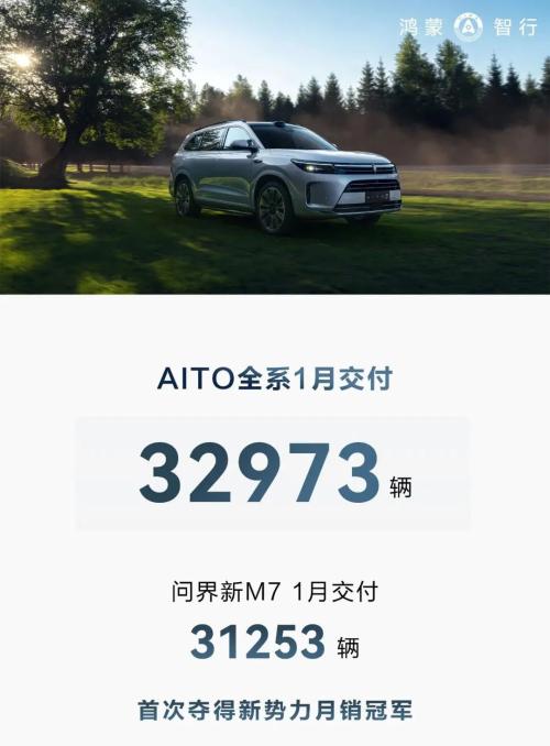 问鼎新势力月销冠军,问界汽车1月交付新车32973辆