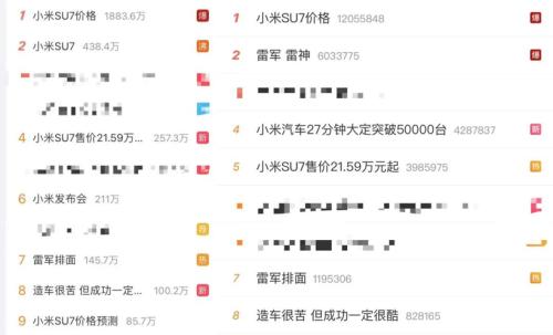 更别提,线上还有数以百万计的网友在各个平台刷着关于小米售价的段子,微博热搜随着价格的逼近一个接着一个冲到前十。