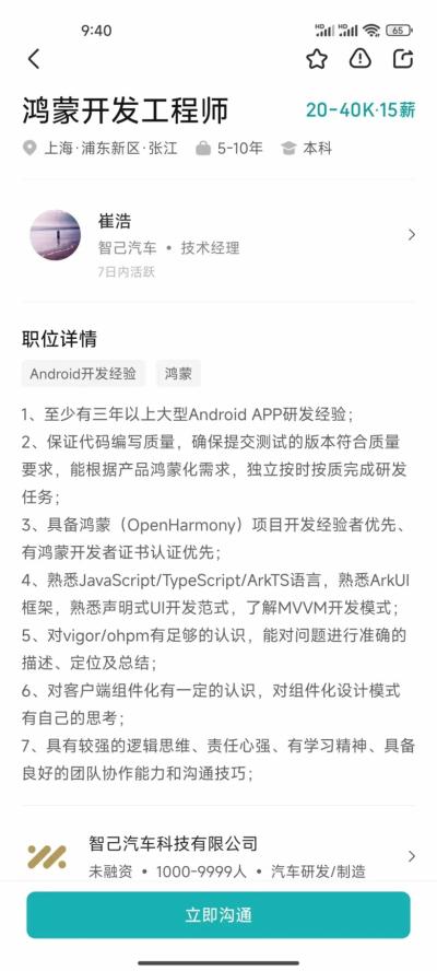 回到开篇智己汽车招聘鸿蒙开发工程师的内容,与其猜想说这是上汽集团的战略调整,不如说是技术上的交流,是智己汽车在技术层面迈出一步,和鸿蒙系统搭上桥。