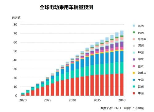 具体到国家,随着更多低成本电动汽车的普及,泰国、印度和巴西等国家获得创纪录的销量,电动汽车已经不再是富裕国家的专属,叠加电气化技术不断改进和电池价格的下降,全球所有汽车市场的电动汽车销量都将从政策驱动转变为消费者需求驱动。而中国作为电动汽车全球领导者的地位将保持不变。
