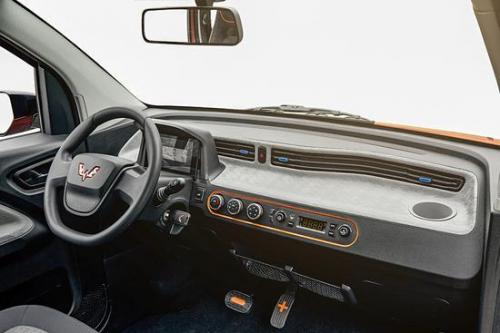 五菱宏光MINI EV对内饰采用了非常卡通化的设计,主副驾有着贯通式一体化出风口、同时还有摆放式仪表台造型,别出心裁的设计彰显了这款小神车的周到贴心。