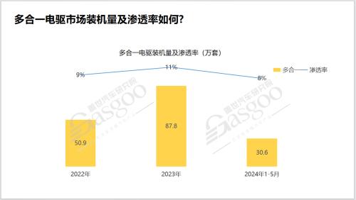 市场数据同样印证了多合一电驱技术的蓬勃生命力。根据盖世汽车研究院乘用车电气化配置数据,2022年至2023年,多合一电驱市场装机量从50.9万套激增至87.8万套,渗透率亦由9%提升至11%,彰显了市场的强劲增长动力和广泛的技术认可。进入2024年,市场活跃度不减,前五月装机量已达30.6万套,渗透率维持在8%,预示着全年有望实现新的突破。