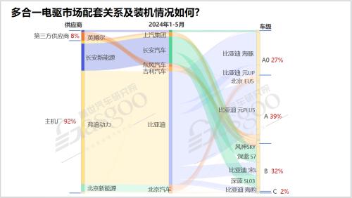 从车型级别维度分析,A级车市场成为多合一电驱技术应用的热点,其占比高达39%,凸显了该技术在中低端市场中的广泛接受度与适用性。紧随其后的是B级与A0级车型,C级车电驱系统的装机量相对较少,仅占2%。