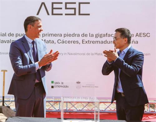 当地时间7月8日,远景动力位于西班牙纳瓦尔莫拉德拉马塔市的电池超级工厂举行开工仪式。西班牙首相佩德罗*桑切斯、远景科技集团董事长张雷、远景动力美国和欧洲首席执行官方诺德等出席了本次仪式。