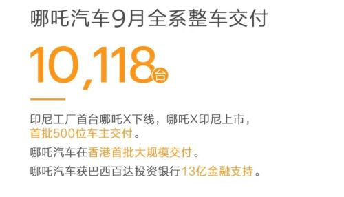10月1日,哪吒汽车官方宣布,9月全系整车交付10118台。与哪吒汽车8月交付11005辆相比,略有下滑,与去年9月全系交付13211台相比,同比下降23.41%。