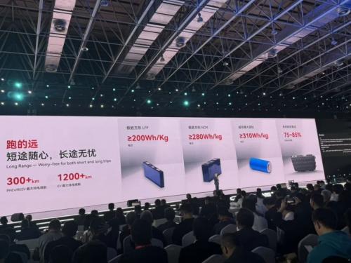 方形磷酸铁锂系列,能量密度为120-160Wh/kg,纯电续航200-600km、插混和增程的纯电续航为100-200km;
