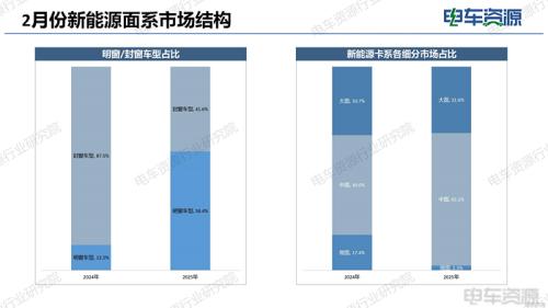 从车型分类来看,明窗车型在25年2月份占比同比大幅提升,从2024年的2月份12.5%升至58.4%,封窗车型占比相应下降。这或许和市场需求变化有关,明窗车型在一些特定场景,像城市配送、客货两用等方面,可能更具优势。