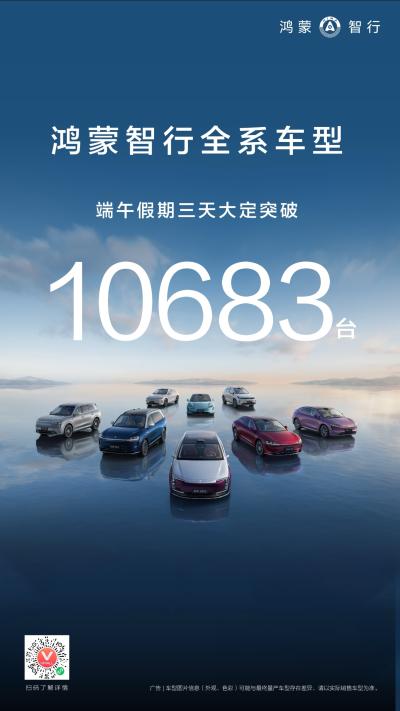 6月3日消息,鸿蒙智行官方宣布,其端午假期三天全系车型大定突破10683台。