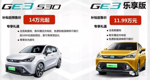 同时,广汽新能源正式推出GE3乐享版,官方指导价21.28万元,补贴后价格为11.99万元,使消费者购车门槛进一步降低。