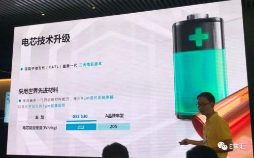 他提出,广汽新能源拥有新能源纯电动的专用平台,一切以电池为中心设计。所以,能够取得更好的空间,更舒适的布局,更好的安全性。得益于广汽新能源GE3 530将电池系统进行重新的调教和设计,电池系统能量密度大于160Wh/kg,而百公里综合耗电量降低至14.7kWh/100km。采用轻量化的航空级铝型材制造电池上下壳体,并且增加了极速冷却和加温双控温技术。车辆电池系统可以做到长效的理想运行温度空间。