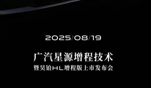 此次技术发布会定于8月19日举行,届时,首款搭载“星源增程”技术的车型——昊铂HL增程版也将正式上市。