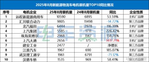 这一“剧变”是否意味着新能源物流车市场第三方电机品牌整体走向衰退,主机厂自主品牌整体崛起?下面,一起随电车资源揭开8月电机榜。