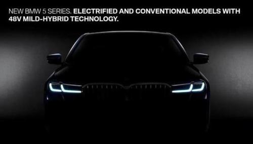 中国汽车新闻网讯日前,从宝马官方获得了一张新款宝马5系预告图。据宝马CEO齐普策宣布,中期改款宝马5系将于两周之内正式亮相。此外,据最新消息显示,中期改款5系燃油版车型将配备48V微混系统,同时还将推出电气化版本车型。