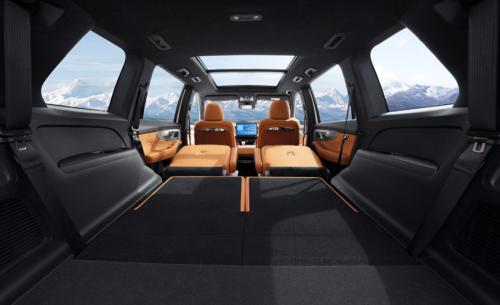 传祺新能源ES9不仅在用电方面有着很多拓展功能,在其自身空间利用上也是灵活百变。作为一台6/7座车型,新车第三排座椅支持电动1:1折叠,同时第二排座椅也支持一键折叠,日常用起来十分便捷。一家三口出行放倒第三排座椅,可以获得超大后备箱空间,即使5-6人出行,也可以放倒一边座椅,全家人的行李都能轻松装载。