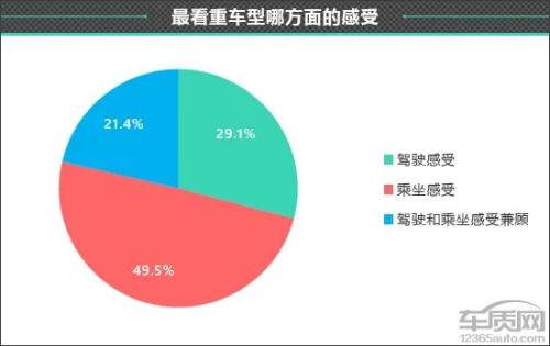 在衡量一款车型驾乘感受如何时,每个人所看重的部分不尽相同。在此次调查中,有49.5%的车主表示更看重“乘坐感受”。另外还有29.1%和21.4%的车主分别看重“驾驶感受”和“驾驶和乘坐感受兼顾”。