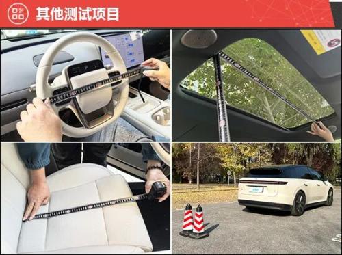 此外,我们还针对驻车雷达、灯光/视野、操控系统、轮胎、天窗、座椅、后备厢进行了测试。经过测试,2025款理想i6的前后排座椅座垫长度均达到同级别上游水平,乘坐体验舒适。评测车选配米其林e*PRIMACY系列轮胎,具有低噪音和低滚阻等特点,规格为265/45 R21。相对而言,两侧外后视镜视野范围角度未达到同级别车型测试均值,有待优化。