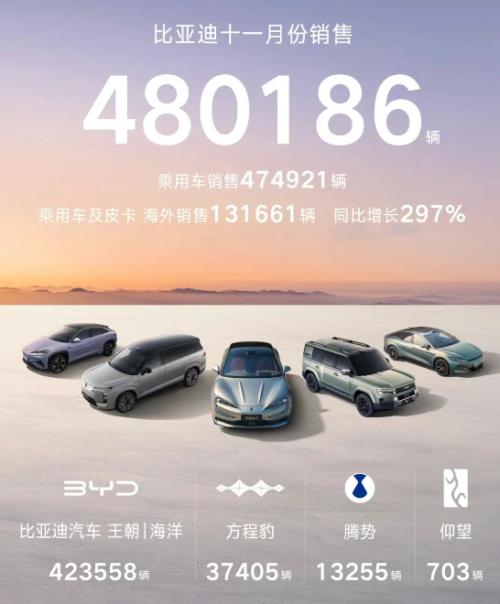 岚图汽车11月交付量为20005辆,刷新历史,可见其品牌势能站上了全新高度。这一里程碑的达成,离不开旗舰产品的驱动与清晰的产品矩阵构建。 此前于11月8日上市的旗舰SUV“泰山”,价格区间定于37.99万至50.99万元。其融合了华为乾崑智驾ADS 4.0与鸿蒙座舱5.0,并基于800V碳化硅平台打造,综合续航可达1400公里,上市21分钟订单突破万台,市场反响较好。 旗舰轿车追光L也定于12月10日上市,随着追光L的上市,岚图完成在轿车、MPV与SUV三大细分市场的旗舰车型布局,由此形成“三旗舰”产品矩阵。追光L同样搭载华为最新智能科技,并配备后轮独立转向等高端配置,进一步巩固其科技豪华形象。 11月10日,岚图第30万辆整车下线,从2021年8月交付第一款岚图FREE到第30万辆下线,岚图用时不到四年半。 与此同时,东风旗下专注于电动越野这一细分高地的猛士科技,也展现出上升势头。其11月销量达到2007辆,环比增长超38.4%。作为高端电动越野品牌,猛士在今年4月发布了全新旗舰车型M817,以“军工+智能”为核心理念,搭载华为乾崑智驾ADS 4.0系统,旨在开创智能越野新体验。 比亚迪11月共销售480186辆,创下年内新高。其中海外销售突破13万辆,同比增长297%,同样创下历史新高。今年1-11月,其累计销售已突破418万辆。 具体到新能源品牌,方程豹品牌11月销量达37405辆,已成为品牌强劲的增长极。其中,方程豹钛7自9月上市以来持续热销,上市80天累计销量便突破5万辆,打破了方盒子车型实现五万辆销量的历史速度记录。此外,豹5与钛3也分别贡献了5569台和6054台的销量。 腾势品牌11月销量为13255辆,腾势D9和10月下旬上市的N8L担起了销量重担,分别贡献了5707台和5443台,其中N8L销量较上月增长逾五倍,腾势N9卖出1580台,腾势Z9和N7的销量分别为434和91台。 定位更高的仰望品牌,11月销量为703辆。其中仰望U8销量为526台,仰望U7卖出176台。 上汽集团旗下智己汽车,在11月延续了良好的上升势头,单月销售13577台,连续三月破万,再创历史新高。 其成功一方面得益于产品的持续迭代与精准定位。新一代智己LS6自9月上市以来持续热销,月销量从9月的6429台显著提升至10月的8936台,市场接受度明显增强。 另一方面,于11月12日上市的旗舰大六座车型智己LS9,凭借灵蜥数字底盘3.0、恒星超级增程等配置,上市25分钟大定即突破5000台,为品牌注入了新的增长动能。 在深耕国内市场的同时,智己的全球化进程也在稳步推进。11月,其携战略车型正式登陆新西兰,并进入以色列市场,继成功布局澳大利亚与埃及之后,持续落子大洋洲与中东高端新能源市场。 吉利集团11月总销量达310428辆,同比增长24%。其中,纯电动与插电混动车型合计贡献了187794辆的新能源汽车销量,占总销量的约60%,转型成效显著。 主攻主流市场的吉利银河表现堪称现象级,11月销量达132652辆,同比增长76%。截止10月底,吉利银河已经达成年销百万,成为最快达成这一目标的新能源品牌。旗下多款车型表现抢眼,形成了稳固的销量基盘。 聚焦高端智能电动市场的极氪科技集团,11月交付63902辆汽车,同比增长7.1%,这是其销量第二次突破六万大关。极氪品牌与领克品牌在其架构下协同发展。 其中,极氪品牌交付28843台,极氪9X车型自9月底上市后市场反响较好,截至11月底交付已超过万台,单车成交均价达53.8万元。领克品牌交付35059台,其新能源车型销量达26303台,占比约75%。高端车型领克900上市6个月交付突破5万台,连续跻身细分市场前列。 此外,领克的全球化布局深厚,截至目前,领克已在海外布局50个市场,开设门店超200家。其中,欧洲业务版图持续扩大,已进入25个欧洲市场,超125家门店布局。 长安汽车在新能源领域的追赶之势,通过启源、深蓝、阿维塔三大品牌清晰而有力的差异化布局,正变得愈发强劲。集团11月总销量28.3万辆,同比增长2.3%;新能源销量达12.5万辆,同比增长23%,连续3个月突破10万辆大关。 长安启源11月销量为46909辆,环比增长26%。新车型A06于11月6日上市,价格权益发布首月订单即突破30000辆;全新Q05上市十日订单也突破13000辆。 深蓝汽车11月销量为33060辆,1-11月累计同比增长45.7%。其中,深蓝S05当月销量达到16170辆,已经连续6个月销量破万,成为品牌的稳定支柱。 定位于高端智能电动市场的阿维塔,11月销量为14057辆,同比增长21.4%,并已连续9个月销量破万,进入了稳健发展的通道。 值得关注的是,阿维塔于11月底正式向港交所提交上市申请,计划于2026年第二季度完成上市。招股书显示,其上半年收入为122.08亿元,同比增长98.5%,其中,车辆销售收入达114.9亿元。同时,其全球化步伐也在加速,11月成功登陆巴西与埃及市场。 奇瑞集团在11月迎来了新能源业务的增长,单月新能源汽车销售116794辆,同比增长50.1%,再创历史新高,并实现环比“四连涨”。 这一业绩的攀升,得益于旗下各品牌密集“上新”形成的爆款矩阵全面发力,覆盖了从主流到高端的多个细分市场。 风云品牌凭借A9L与T11组成的“双旗舰”阵容巩固混动市场地位,其中风云A9L已连续四个月交付破万辆,风云T11上市24小时大定订单突破3.8万辆。 面向豪华电混越野的纵横品牌,首款车型G700上市24小时大定订单突破1.5万辆。主打年轻化的iCAR品牌,旗下V23车型前10个月累计销售54183辆,稳居新能源方盒子细分市场销量榜首。定位高端的星途品牌,其ET5车型上市3小时锁单即突破5000台。 北汽新能源通过极狐与享界双品牌的协同