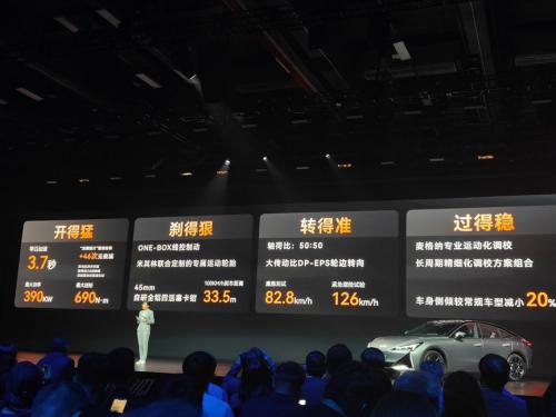 在动力层面,新车搭载了同步+异步双电机组合,总功率高达390kW,总扭矩达到690N·m,零百加速仅需3.7s。不仅加速够快,极狐阿尔法S5刹得也够稳。得益于铝制四活塞制动卡钳加持,新车百零制动仅需33.5m,同时由于拥有大传动比的转向系统,阿尔法S5的指向性十分精准,为驾驶者提供指哪打哪的精准操控。