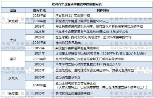 “碳中和”已经成为全球最为关注的发展话题之一,对于汽车产业也是不可逆转的发展趋势,加速倒逼产业发展方式向绿色低碳转型,其能源体系“非碳化”和产业体系“去碳化”更是重中之重。在这方面,欧盟已经走在前列,欧盟对车辆碳排放监管日益严格,并逐渐向全生命周期碳排放监管过渡。在日益严苛的政策背景下,欧洲各大汽车品牌相继制订碳中和或零排放时间表。
