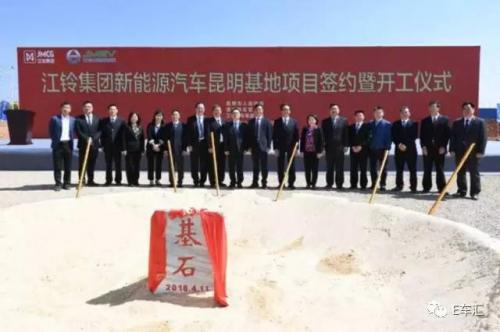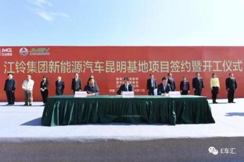 4月11日,江铃集团新能源汽车昆明基地项目签约暨开工仪式在云南滇中新区杨林经济开发区汽车产业园举行。开工仪式上,昆明市委副书记、市长王喜良、市委副书记、滇中新区管委会主任何刚与江铃集团党委书记、董事长邱天高共同签署了《江铃集团新能源汽车昆明基地项目投资合作协议》。