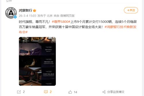 3月4日消息,阿维塔公关副总监高全利公布品牌2026年2月销量数据,当月阿维塔销量达4033辆,海外同比增长177%,全球化步伐加速。