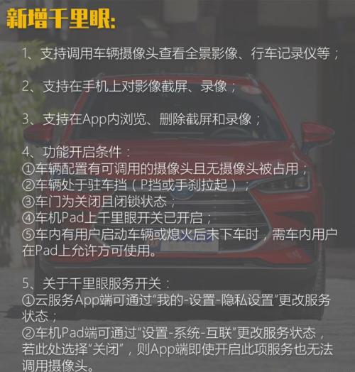 在新增功能方面,千里眼可以通过车载摄像头(包括全景影像、行程记录仪等),对车辆远程实时查看,还能进行截屏、录像等操作,有了这项功能,车主再也不用时刻担心车辆的安全了。此外,车内的影像将会在后续云服务App 4.8.5版本上线。