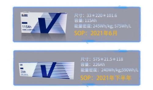 第一款产品是是基于590模组的电芯设计,容量为115Ah,电芯的能量密度达到245wh/kg;这款产品的特点,是在通用化电芯尺寸设计基础上完成的。它能够搭载到目前大部分新的纯电平台上,出色的循环寿命和日历寿命特性,使得这款电芯在整车端能够实现15年120万公里的质保,在2021年6月份推向市场。