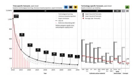 多年来,电池成本一直呈明显下降趋势。这具有重要意义,因为在电动汽车和固定储能系统(stationary energy storage system)中,电池作为关键部件占据很大一部分成本。现在,为了充分提升竞争力,需要进一步降低电池成本,以经济有效地向碳中性社会过渡。为了制定正确的战略方针,政策制定者和行业需要准确的电池成本预测。学术文献中有许多关于电池系统的成本预测,到2030年,从每千瓦时低于100美元到超过400美元不等。对于开发有效的电动出行激励计划,以及汽车制造商设计可盈利产品组合,这种不确定性构成了重大挑战。